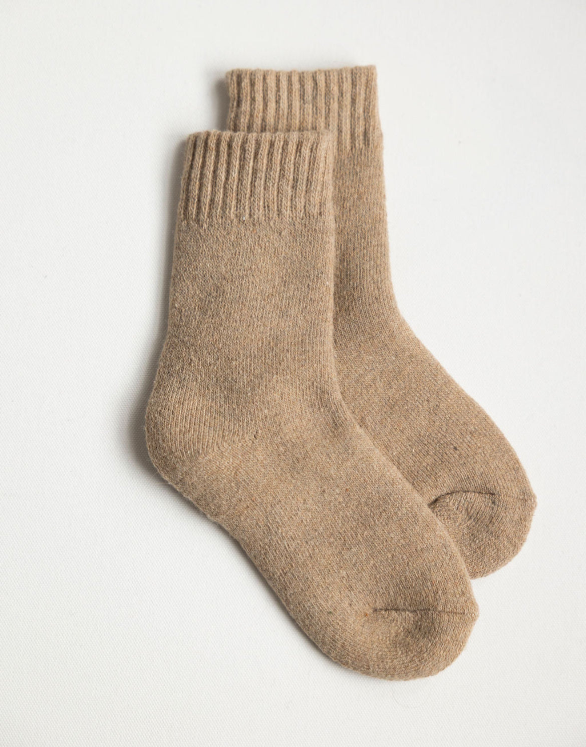 Our kids Merino wool blend socks are a celebration of everything we love about natural fibres - especially high-performance animal fibres. Made from soft, breathable Merino wool and blended with the necessary reinforcement of nylon and polyester, these socks keep little feet warm in cold weather without overheating, so the adventure never has to stop. Perfect for outdoor play, hikes, or everyday wear, these sturdy socks are built to last. They feature cushioned support for comfort, reinforced durability for rugged use, and a design that can handle everything from thorny trails to repeat trips through the washing machine- without losing their shape or integrity. Whether its climbing trees or exploring trails, these cute and cozy socks are ready for anything your little explorer gets up to.